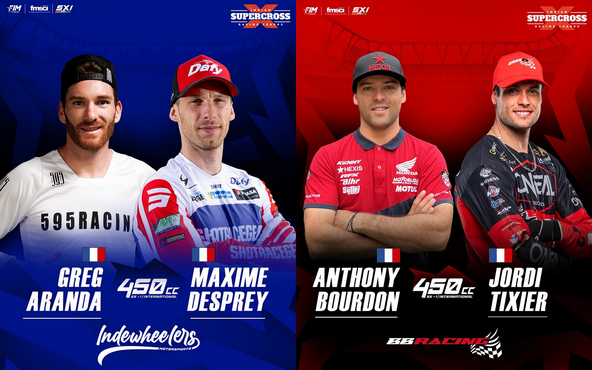La structure IndeWheelers Motorsports n’a pas fait les choses à moitié pour ses débuts sur le championnat, en alignant une équipe solide composée de quatre Français. En 450cc, les incontournables Grégory Aranda et Maxime Desprey feront leurs débuts dans la série, tandis que Calvin Fonvieille et Mickael Lamarque évolueront en 250cc. Mickael Lamarque, lui, retrouve la compétition après avoir participé à la saison inaugurale avec le team BB Racing, où il avait terminé 4ᵉ du championnat.