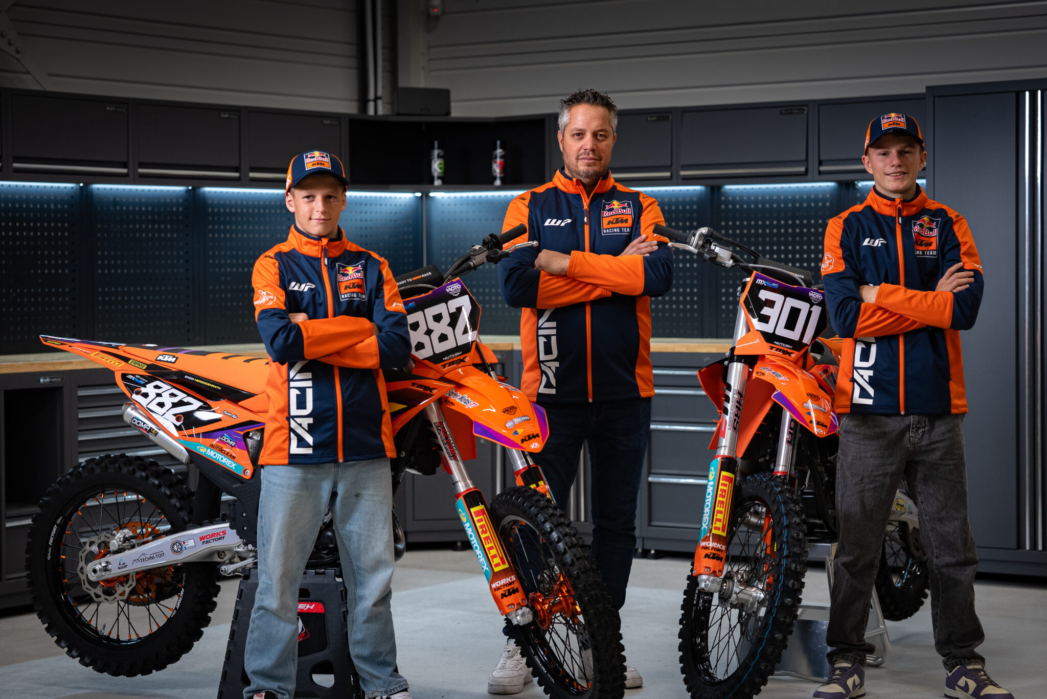 Jules et Adrien sont chez Yamaha, et le team passe KTM. On ne peut de fait que les remercier, ainsi que Yamaha et Moindrot Sports Loisir pour leur investissement durant toutes ces années. Concernant Calvin qui est pilote soutenu par KTM France, ça reste à voir. On est en pourparlers avec lui. On va faire le Junior quoi qu’il arrive avec Enzo et Liam, donc sur le papier, il serait intéressant d’avoir au moins un pilote sur l’Elite, et un autre en Supercross, pour garder le pied dans l’engrenage.